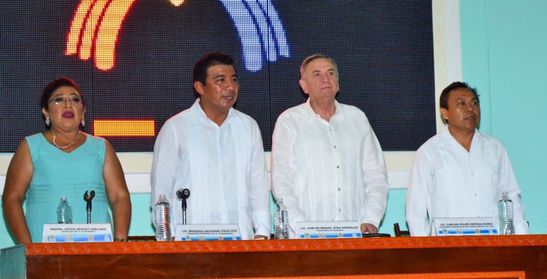 HECELCHAKÁN.- A seguir uniendo esfuerzos para generar en Hecelchakán mayores oportunidades de progreso, convocó el secretario de Gobierno, Carlos Miguel Aysa González, al asistir en representación del gobernador Alejandro Moreno Cárdenas, al primer informe del alcalde Modesto Arcángel Pech Uitz.