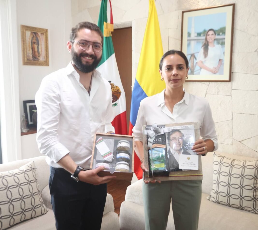 Cancún, Q. R., a 18 de mayo de 2023.- La Presidenta Municipal de Benito Juárez, Ana Patyricia Peralta, recibió con una calurosa bienvenida al embajador de Colombia en México, Álvaro Moisés Ninco, con quien dialogó y compartió experiencias relacionadas con el turismo, seguridad, cultura, entre otros temas, a fin de fortalecer la relación de ambas naciones.