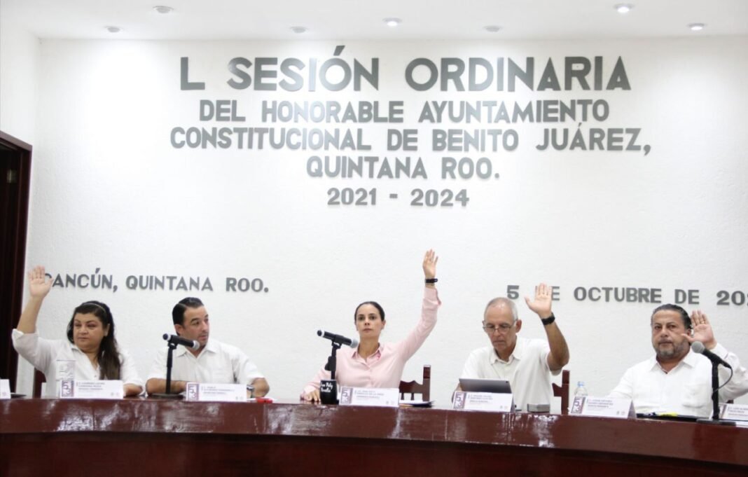Cancún, Q. R., a 05 de octubre de 2023.- Con un enfoque integral en mejorar la ciudad con visión ecológica, AL celebrarse la Quincuagésima Sesión Ordinaria, encabezada por la Presidenta Municipal, Ana Patricia Peralta, el Cabildo de Benito Juárez aprobó por unanimidad celebrar diferentes acuerdos para mejorar el reciclaje de residuos sólidos, cuidar el Parque de la Equidad, promover la creación de huertos urbanos y evitar la contaminación auditiva en la ciudad.