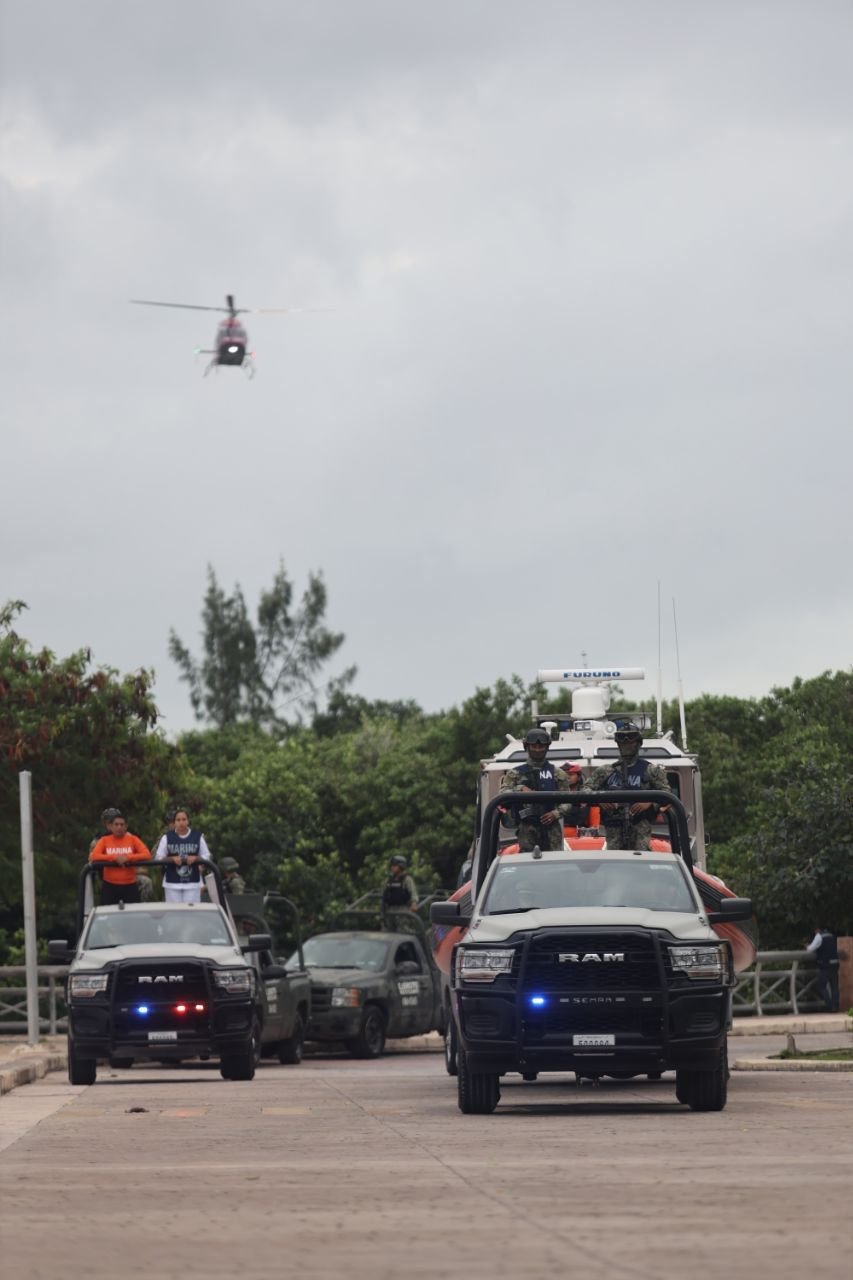 Posteriormente, se realizó un desfile de presentación de los elementos del Plan Marina de la Secretaría de la Defensa Nacional (Sedena), Guardia Nacional, Instituto Nacional de Migración, Ángeles Verdes, Policía de Investigación de la Fiscalía General del Estado (FGE), Policía Estatal Preventiva, y el grupo “Itzama” con drones de vigilancia de la Secretaría Ciudadana del estado de Quintana Roo.