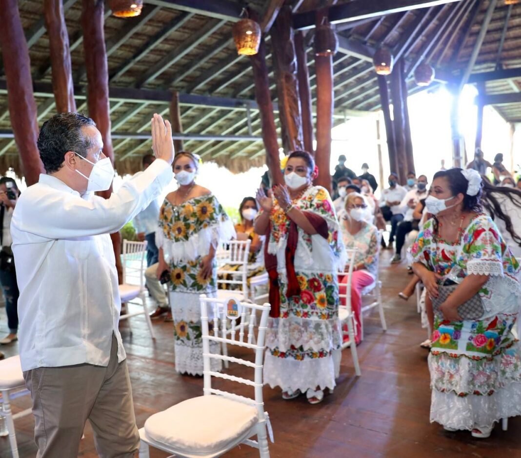 Ahí, el ejecutivo escuchó con atención el mensaje que Víctor Mas ofreció a la ciudadanía en donde se destacaron los logros en materia de salud, educación, obra pública, servicios públicos y atención durante la pandemia por Covid-19.