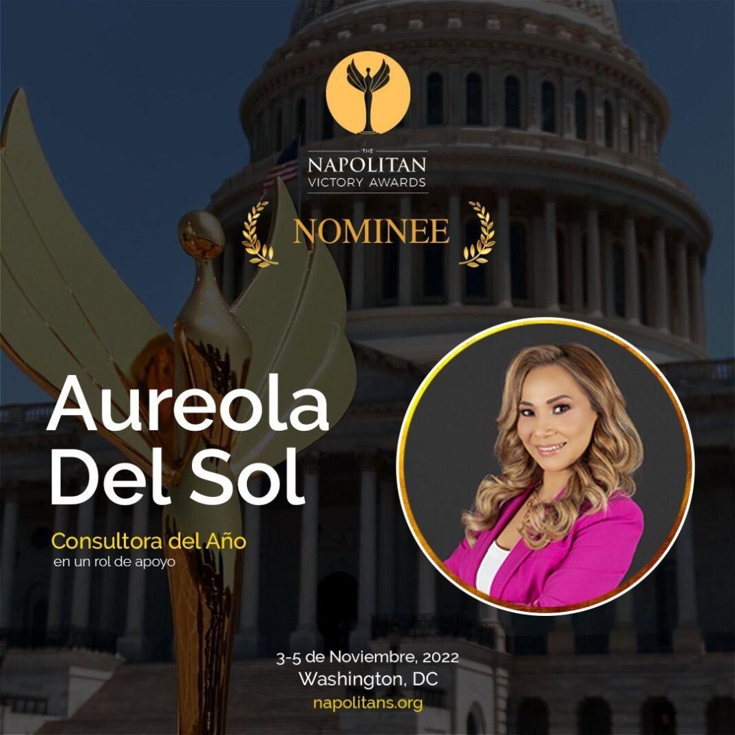 La consultora política y dos veces ganadora de los Napolitan Victory Awards, Aureola del Sol Castillo fue nominada en la edición 2022 en la categoría “Consultora del año en un rol de apoyo” de estos premios que otorga The Washington Academy of Political Arts & Science, por su trabajo en variascampañas electorales para diversos cargos de elección popular en las que participó durante el año 2021.