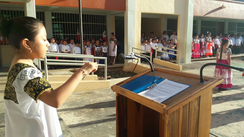 el director del plantel, Fidencio Pech Caamal, presenció el acto cívico en el