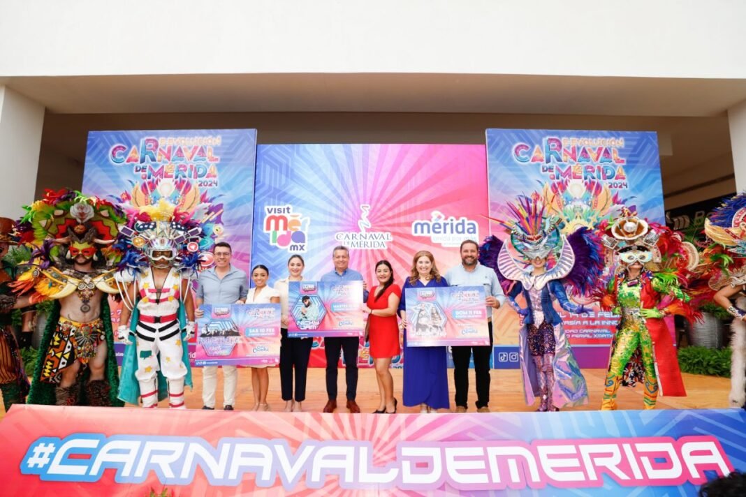 Mérida, Yucatán, 5 de diciembre de 2023-. El Alcalde Alejandro Ruz Castro presentó la cartelera de conciertos del Carnaval de Mérida 2024, a celebrarse del 7 al 14 de febrero, la cual contará con la presencia de artistas nacionales e internacionales que traerán a los festejos algarabía, ritmo y diversión.