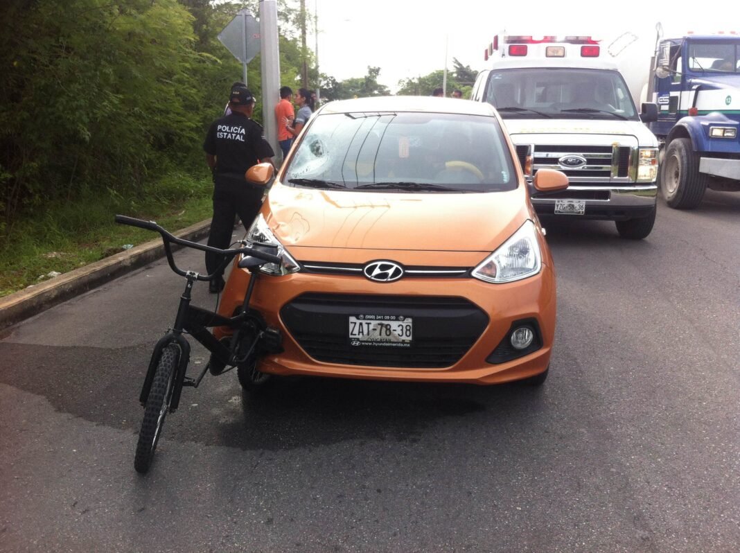 Ya que la guiadora del vehículo no se percató de la presencia del ciclista, lo embistió y provocó que este saliera volando varios metros, y que la bicicleta terminara incrustada en el frente del i-10.