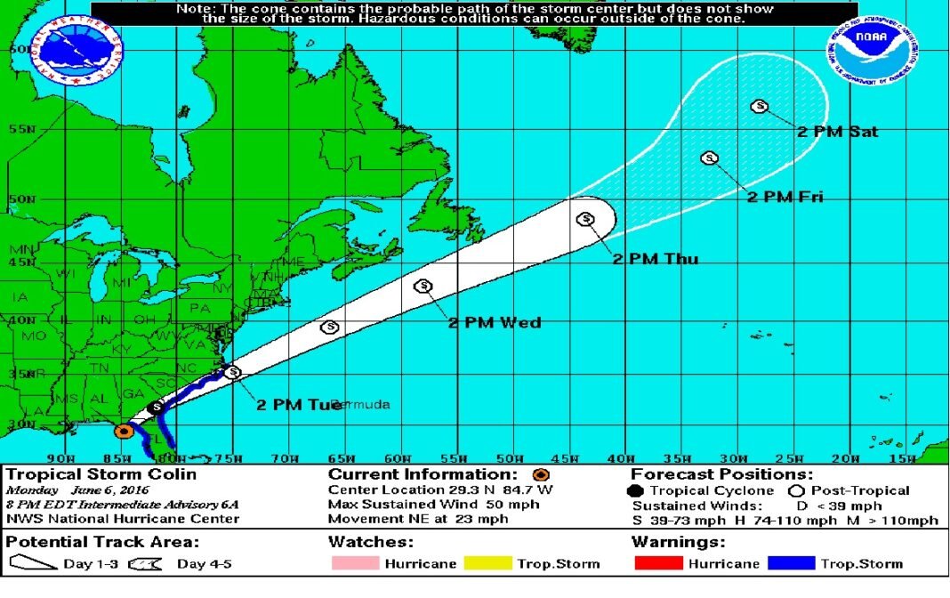 1.- La tormenta tropical “Colín” del Golfo de México se localizó el día de hoy a las 20:00 horas en las coordenadas 29.3 grados latitud Norte y 84.7 grados longitud Oeste; aproximadamente a 55 km al Sur/sureste de Apalachicola, Florida, E.U, y a 155 kilómetros al Oeste de Cedar Key, E.U.A., con vientos máximos cerca del centro de 85 kilómetros por hora, con rachas mayores; se mueve al Norte/noreste (40°) a razón de 37 kilómetros por hora, en su amplia circulación ciclónica continúa originando desprendimientos en las bandas nubosas hacia la Península de Yucatán, provocando nublados con lluvias y chubascos dispersos acompañados de actividad eléctrica aislada por la noche y madrugada. Por su dirección de movimiento y alejamiento gradual, no representa ningún riesgo para el estado de Quintana Roo, se monitorea.