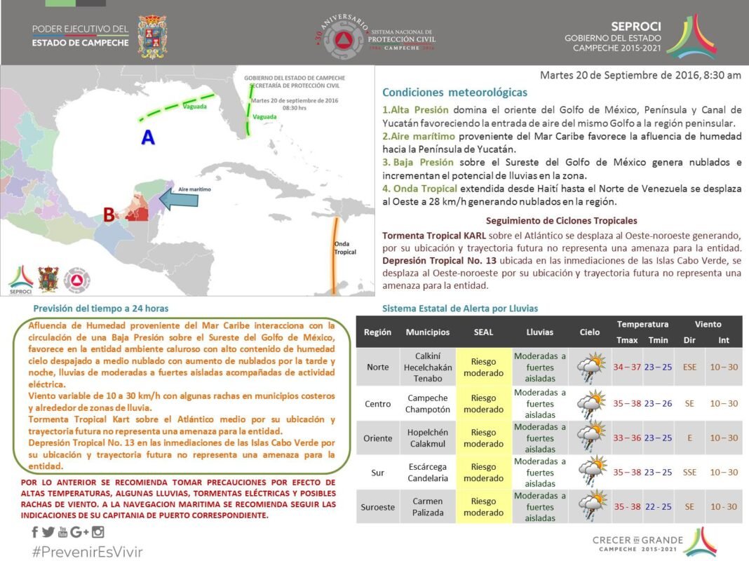 CAMPECHE Boletín Meteorológico By LaRevistaP 20/09/2016 0 0 Cuota FacebookTwitterPinterestWhatsAppEmailImpresiónTelegram Must read La Mérida que perdimos 21/03/2026 PorEsto! cumple 35 años: el periodismo crítico en México que resiste, denuncia y acompaña 21/03/2026 Incrementa Cecilia Patrón la infraestructura urbana para mejorar la circulación y evitar inundaciones. 21/03/2026 Camión de paquetería desata pánico al invadir zona de obras en la carretera Campeche–Mérida 20/03/2026 LaRevistaPhttp://lareviesta.com.mxLa Revista Peninsular, Semanario de información y Análisis político y social: entrevistas, reportajes y más... Gobierno del Estado de Campeche Cuota FacebookTwitterPinterestWhatsAppEmailImpresiónTelegram Artículo anterior¡Qué contraste! La reacción de una niña al conocer a Barack Obama y Donald Trump se vuelve viralArtículo siguienteUna lógica fuera de lógica - Advertisement - More articles Camión de paquetería desata pánico al invadir zona de obras en la carretera Campeche–Mérida 20/03/2026 El futuro de las pensiones en la UACAM: Un llamado a la colaboración colectiva 19/03/2026 Crisis en Campeche: 66 casos de maltrato animal desatan alarmas 18/03/2026 DEJA UNA RESPUESTA Cancelar respuesta Comentario: Por favor ingrese su comentario! Nombre:* Por favor ingrese su nombre aquí Correo electrónico:* ¡Has introducido una dirección de correo electrónico incorrecta! Por favor ingrese su dirección de correo electrónico aquí Sitio web: Guardar mi nombre, correo electrónico y sitio web en este navegador la próxima vez que comente. - Advertisement - Latest article La Mérida que perdimos 21/03/2026 PorEsto! cumple 35 años: el periodismo crítico en México que resiste, denuncia y acompaña 21/03/2026 Incrementa Cecilia Patrón la infraestructura urbana para mejorar la circulación y evitar inundaciones. 21/03/2026 Camión de paquetería desata pánico al invadir zona de obras en la carretera Campeche–Mérida 20/03/2026 Vacacionistas en riesgo: crecen fraudes digitales en Yucatán 20/03/2026