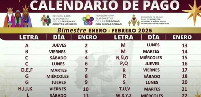 El calendario oficial establece las fechas de depósito basándose en la inicial del primer apellido de los beneficiarios. El jueves 2 de enero se realizaron depósitos para los apellidos que comienzan con la letra A. El viernes 3 de enero será el turno de los beneficiarios con la letra B. El sábado 4 de enero se atenderá a los apellidos que inicien con la letra C, y el lunes 6 de enero se completará esta fase con los apellidos que comiencen con la letra D.