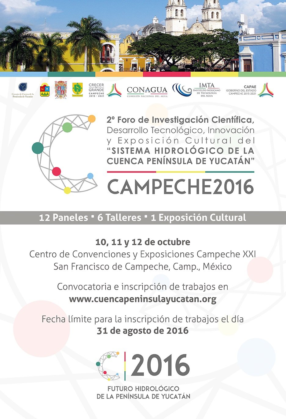 La ciudad de San Francisco de Campeche, será sede del 2° Foro de Investigación Científica, Desarrollo Tecnológico, Innovación y Exposición Cultural del “Sistema Hidrológico de la Cuenca Península de Yucatán”, que se celebrará los días 10, 11 y 12 de octubre del presente año, en el Centro de Convenciones “Campeche XXI”.