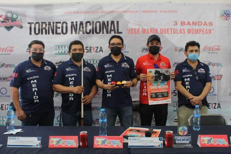 Mérida, Yucatán, 14 de noviembre de 2021.- El Campeonato Nacional Abierto de Billar de Tres Bandas se realizará del 24 al 28 de este mes, organizado por el Billar Chocholá de Mérida, con patrocinadores y personas invitadas especiales que presentaron esta convocatoria, la cual cuenta con el respaldo del Gobernador Mauricio Vila Dosal, a través del Instituto del Deporte (IDEY).