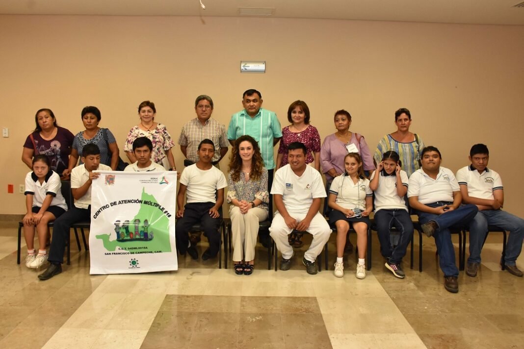La Presidenta del Patronato, Christelle Castañón de Moreno, deseó parabienes a las niñas y niños del Centro de Atención Múltiple (CAM) No.16 que asistirán a la escuela para la capacitación laboral de personas con discapacidad, a invitación de la Confederación Mexicana de Organizaciones a favor de las personas con discapacidad intelectual, A.C. (CONFE). Los alumnos estuvieron acompañados por sus maestros, padres y la jefa del departamento de Educación Especial de la Secretaría de Educación (SEDUC) Teresita de Jesús Durán Vela.