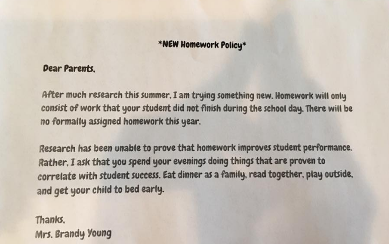 La carta en cuestión, publicada en Facebook por Samantha Gallagher, madre de una de sus alumnas, ha terminado volviéndose viral en la red de redes, con el valor agregado de miles de comentarios favorables a esta medida que definitivamente rompe con un estilo de trabajo propio de la educación tradicional.