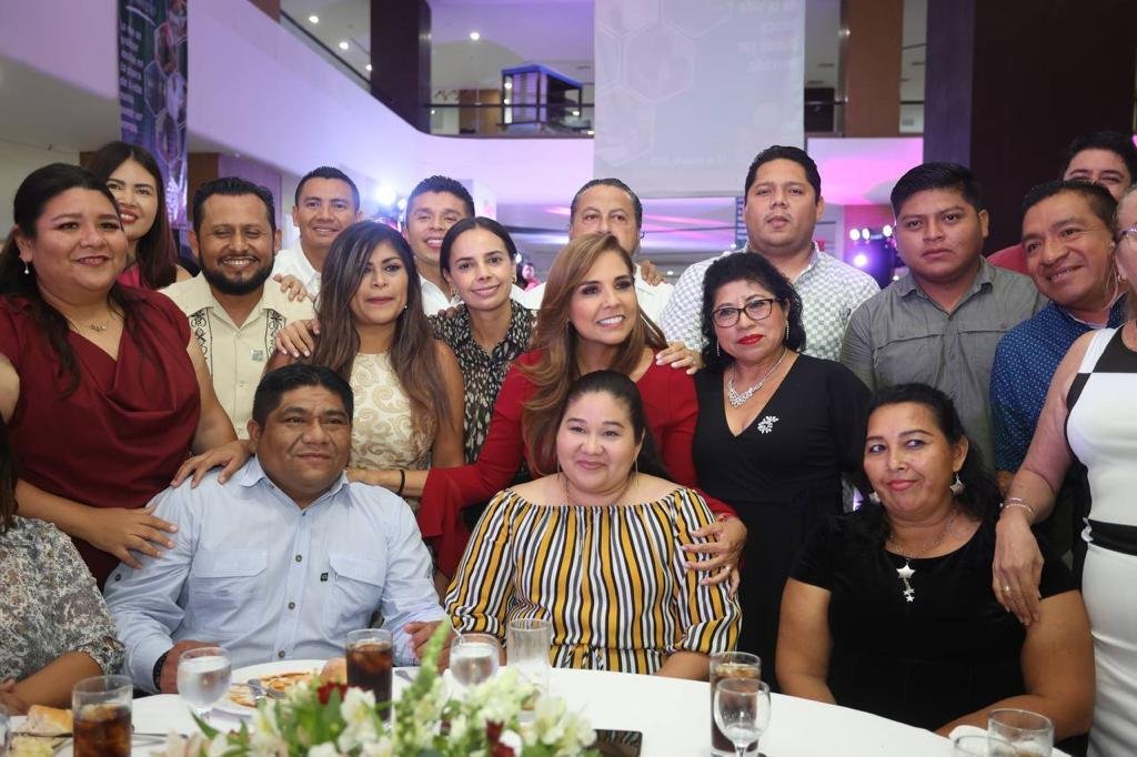 Ana Paty Peralta, durante la cena conmemorativa convivió y sonrió con las y los celebrados, quienes compartieron momentos de calidad con autoridades de los tres órdenes de gobierno, recordándoles que los festejos son por su ardua labor y amor por la enseñanza.