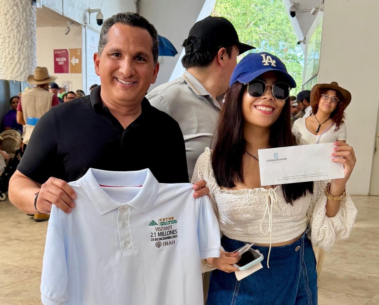 A unos días de concluir el año, la joven Dulce Guzmán Cortez se convirtió este martes en la visitante 2.1 millones que ingresa a la zona arqueológica de Chichén Itzá, Patrimonio de la Humanidad y Maravilla del Mundo, en una jornada que se caracterizó por la alta afluencia de turistas nacionales e internacionales.