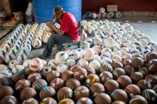 “Aquí todos cosemos balones: hombres, mujeres, niños… ¡hasta mi esposo! No hay otro trabajo”, cuenta a la AFP Virginia Ramírez, mientras hilvana bajo el techo de palos de su casa.