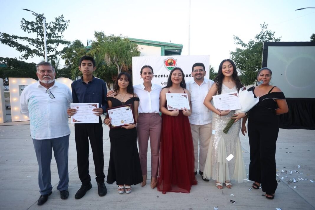“Muchísimas gracias por nombrarme madrina de su generación; significa mucho para mí, es un orgullo y también un motivo más para seguir trabajando sin descanso por las niñas, niños, adolescentes y jóvenes como lo hemos hecho, en equipo, con las y los maestros, con sus papás y mamás. Porque en esta tarea, todas y todos estamos unidos, para formar mejores cancunenses y construir entre todos la mejor versión de nuestra ciudad”, expresó.