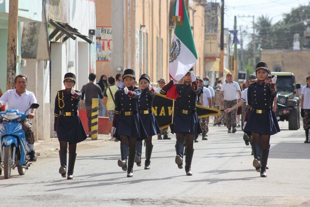 OXKUTZCAB.-Con vistosa y colorida presentación de las escuelas primarias, secundarias, de educación media superior, el Instituto Tecnológico Superior del Sur de Yucatán y elementos de la policía municipal se realizó hoy el desfile cívico-deportivo para conmemorar el CXII Aniversario de la Revolución Mexicana.