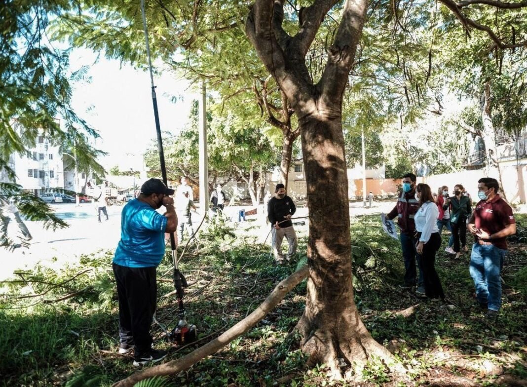 Cancún, Q.R. a 15 de enero del 2022.- El gobierno de Benito Juárez continúa con las brigadas integrales de servicios públicos en diferentes colonias del municipio a través de las cuales se han levantado más de 4 toneladas de cacharros y limpiado más de 400 mil metros cuadrados de parques con el objetivo de dar mantenimiento a los espacios públicos para que las familias tengan calles libres de basura y lugares de sano esparcimiento dignos.