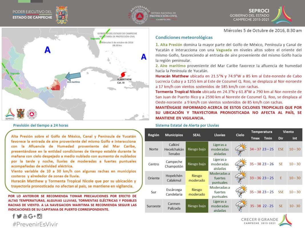 Huracán Matthew y Tormenta Tropical Nicole que por su ubicación y