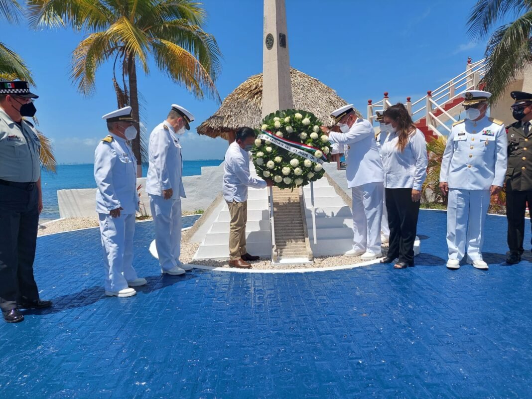 Isla Mujeres, Q.R., a 21 de abril de 2022.- Autoridades de Benito Juárez participaron en la ceremonia cívica en conmemoración del CVIII Aniversario de la Defensa Patriótica del Puerto de Veracruz, suceso ocurrido el 21 de abril de 1914, en contra de las tropas estadounidenses.