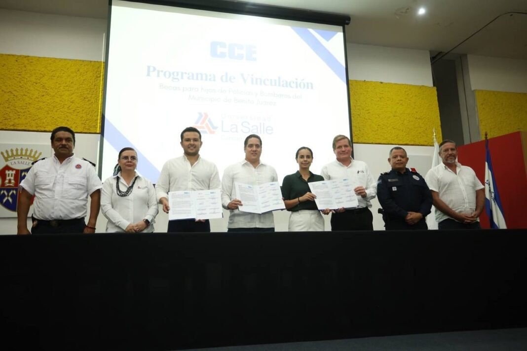 Consejo Coordinador Empresarial del Caribe (CCE) y la Universidad La Salle Cancún, entregarán becas a hijos o hijas de Policías y Bomberos