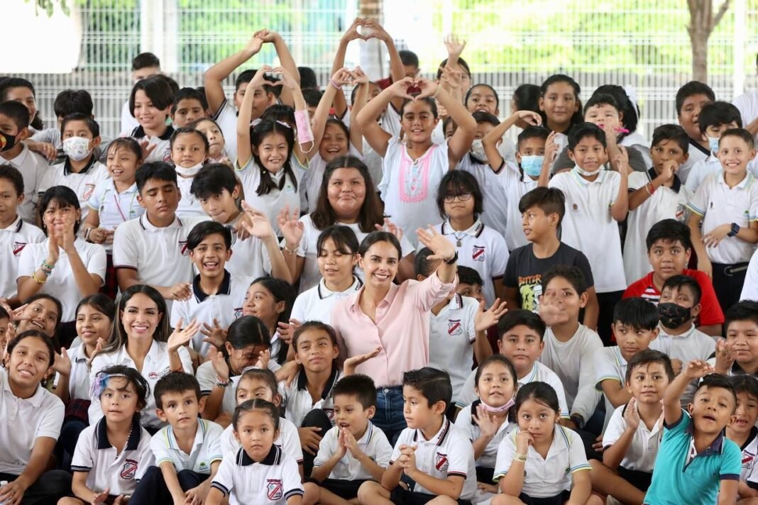 Con abrazos, euforia y aplausos fue recibida la Primera Edil, quien saludó a las y los niños que la esperaban ansiosos en la cancha deportiva, “estoy muy contenta de estar con ustedes, para mí son una prioridad: las niñas y los niños, ¿si sabían que este año en Cancún lo llamamos el Año de las Niñas y los Niños?; me dice su maestra, Bety, que el domo lo hicieron con el recurso federal que nos envía nuestro presidente Andrés Manuel López Obrador con el programa la Escuela es Nuestra, y quiero decirles que les quedó súper bien, allá está el comité, felicidades por el trabajo que hicieron”, dijo ante la comunidad estudiantil, docentes y padres de familia que atestiguaron de inicio a fin este proyecto.