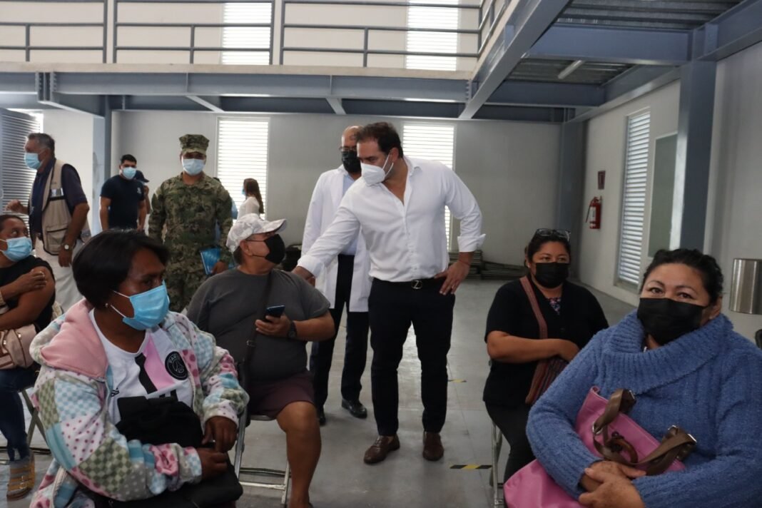 Progreso Yucatán a 24 de enero 2022.- Esta mañana el alcalde Julián Zacarías Curi visito la Unidad Deportiva Progreso para supervisar la jornada de vacunación, de la dosis de refuerzo contra el Covid-19 a adultos de 40 a 59 años.