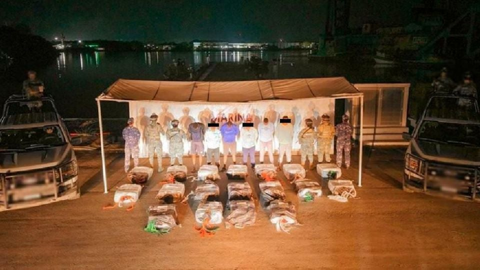 Elementos de seguridad federales llevaron a cabo el decomiso de aproximadamente 900 kilogramos de cocaína que eran transportados en una embarcación frente a las costas del estado de Chiapas, en un operativo que culminó con la detención de seis personas presuntamente vinculadas con el traslado de la droga.
