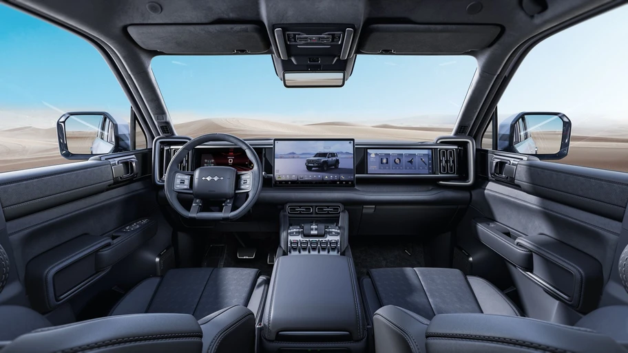 Este modelo se caracteriza por utilizar un chasis de largueros, una configuración poco común en SUVs híbridas y más típica de vehículos todoterreno tradicionales. Está impulsado por un tren motriz híbrido enchufable de última generación: un motor de gasolina 1.5 litros turbo acompañado por dos motores eléctricos, uno en cada eje. El resultado es una potencia combinada de 677 caballos y un torque de 560 lb-pie, cifras que le permiten una aceleración cercana a los 4.8 segundos de 0 a 100 km/h. Su batería de 31.8 kWh —del tipo Blade de BYD— ofrece alrededor de 150 kilómetros de autonomía totalmente eléctrica, una cifra superior a la promedio del segmento.