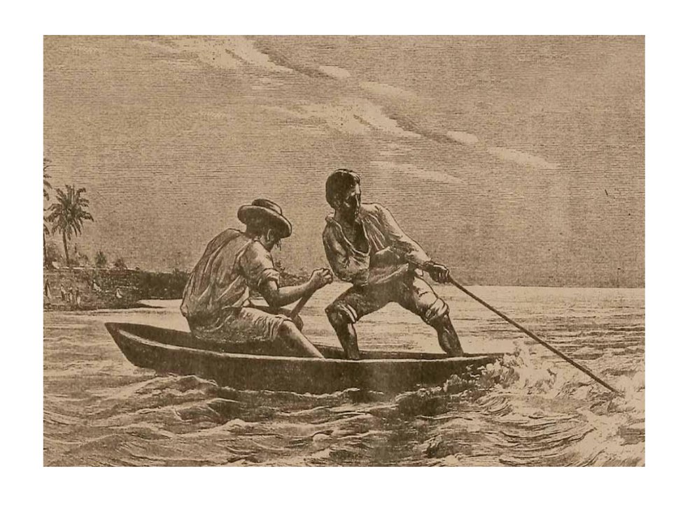 “Colocado en la cima del banco de arena, veo aún a aquel hombre y a su ayudante seguir con paciencia una pista desde una piragua mínima, apenas capaz de contenerlos; veo que lazan su arpón, que se produce un hervor violento en medio del mar y luego se desliza la piragua como una flecha remolcando un pez monstruoso…Veo que otros ojos lo siguen desde la ribera y escuchó los gritos de ¡manatí! ¡manatí! muy pronto modera su marcha la piragua, otro arpón provoca una conmoción nueva y las exclamaciones triunfantes de ¡manatí! ¡manatí! llegan otra vez…La piragua se vuelve a detener…sin comprender bien la maniobra de los indios…Al fin, los vi dirigirse a tierra, dueños ya de su presa; corrí como toda la gente…y allá vi que sacaron a la playa un gigantesco manatí.
