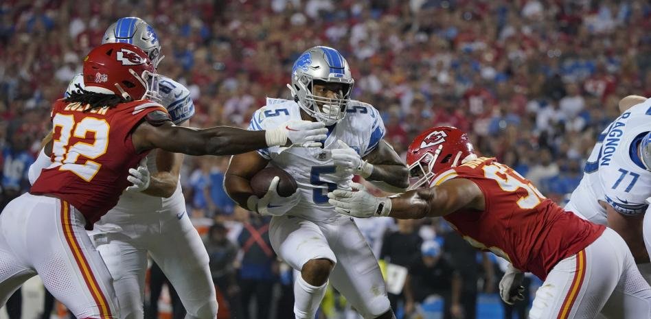 David Montgomery anotó el touchdown de la voltereta y los Lions comienzan por lo alto en una temporada en la que son insólitos favoritos para ganar en la NFC Norte, en tanto los Chiefs tuvieron un revés en la defensa de su título.
