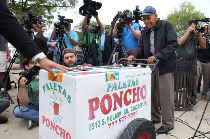 CHICAGO (AP) — Fue una imagen impactante: Un hombre de 89 años arrastrando como podía un carrito de paletas. Fidencio Sánchez seguía trabajando muchas horas todos los días porque no podía darse el lujo de jubilarse. La foto y su historia se hicieron muy populares en la web y miles de personas donaron más de 384.000 dólares para que pueda dejar de trabajar.