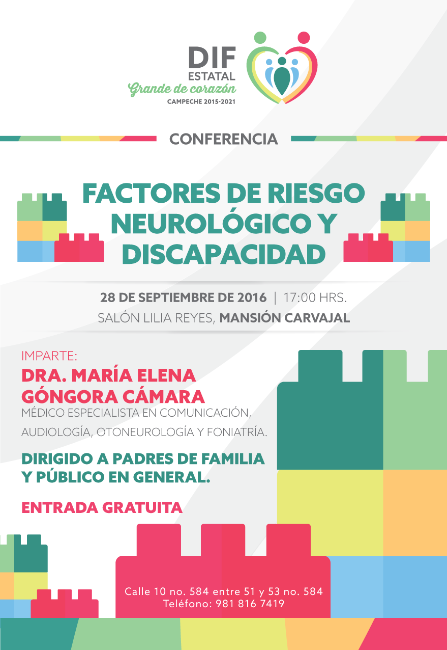 El Sistema Estatal para el Desarrollo Integral de la Familia (DIF), que preside Christelle Castañón de Moreno, a través de su clínica de Psicoterapia, invita a la población en general a la conferencia “Factores de Riesgo Neurológico y Discapacidad”, que se llevará a cabo el 28 de septiembre a las 17:00 horas, en el salón “Lilia Reyes de López de Hernández” de la Mansión Carvajal y la entrada es completamente gratuita.