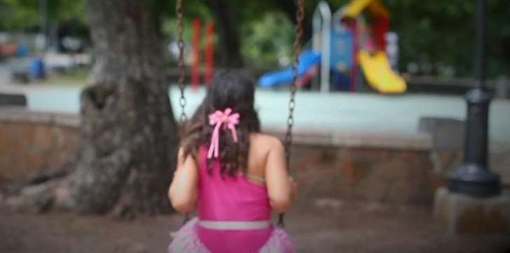 este medio mientras juega en columpios y chorreras. Camina cabizbaja y se