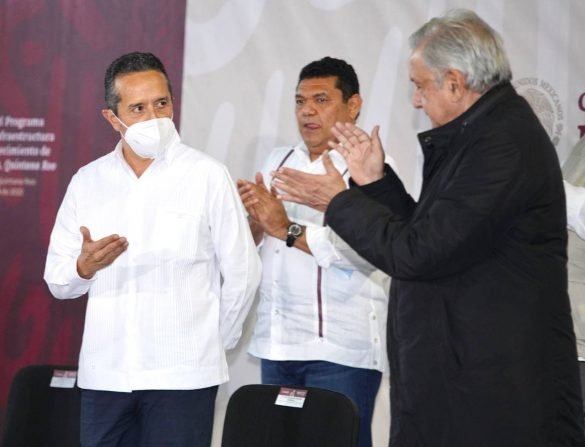 El gobernador de Quintana Roo acompañó al presidente Andrés Manuel López Obrador en el anuncio del programa de obras de infraestructura para el fortalecimiento de Cancún y Tulum que se realizó en esta ciudad.
