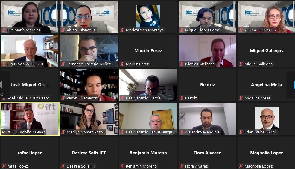 El convenio, cuyo protocolo se realizó de forma virtual, fue suscrito por el Comisionado Presidente del IFT, Adolfo Cuevas Teja y por el Presidente de la ICC México, Claus Von Wobeser, y estuvieron presentes integrantes del Consejo Directivo de ICC México, como Miguel Flores Bernés, Presidente de la Comisión de Competencia Económica de ICC México, miembros de la Comisión de Competencia Económica de la ICC México, así como servidores públicos del IFT.