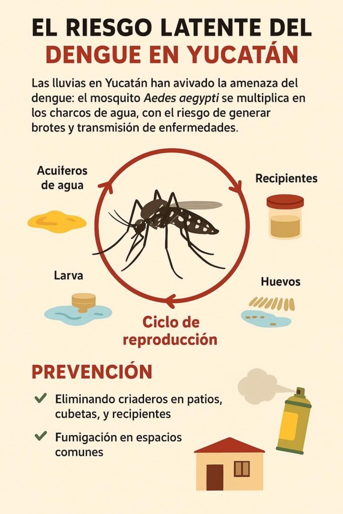 De acuerdo con reportes de El Universal, La Jornada Maya y el propio gobierno estatal, las condiciones climáticas actuales —calor, humedad y acumulación de agua en recipientes y zonas inundadas— favorecen la reproducción de este insecto.