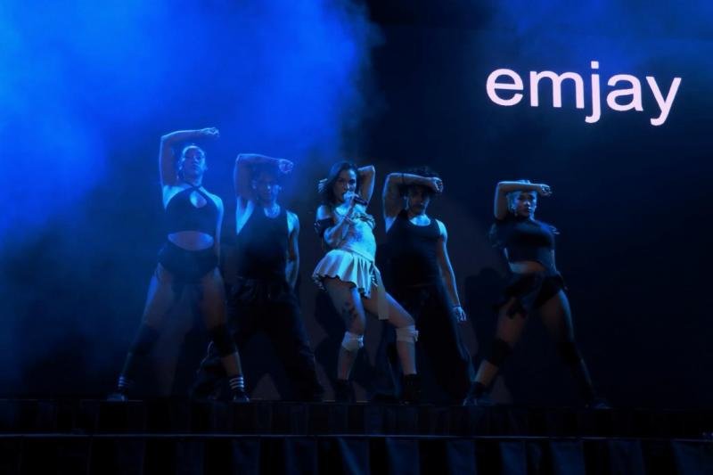 La actitud fresca y poderosa de Emjay provocó que, prácticamente durante todo el concierto, el público permaneciera de pie, bailando incluso entre los pasillos, en un ambiente de estética urbana, atuendos oscuros y tonos metálicos.