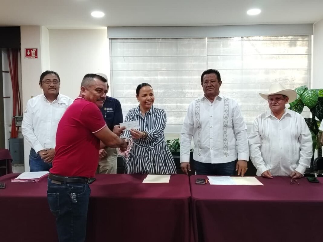Productoras y productores de ocho municipios reciben apoyos para fortalecer actividades ganaderas, apícolas, agroindustriales, acuícolas y pesqueras, con financiamiento del Fondo de Crédito Agropecuario de Yucatán.