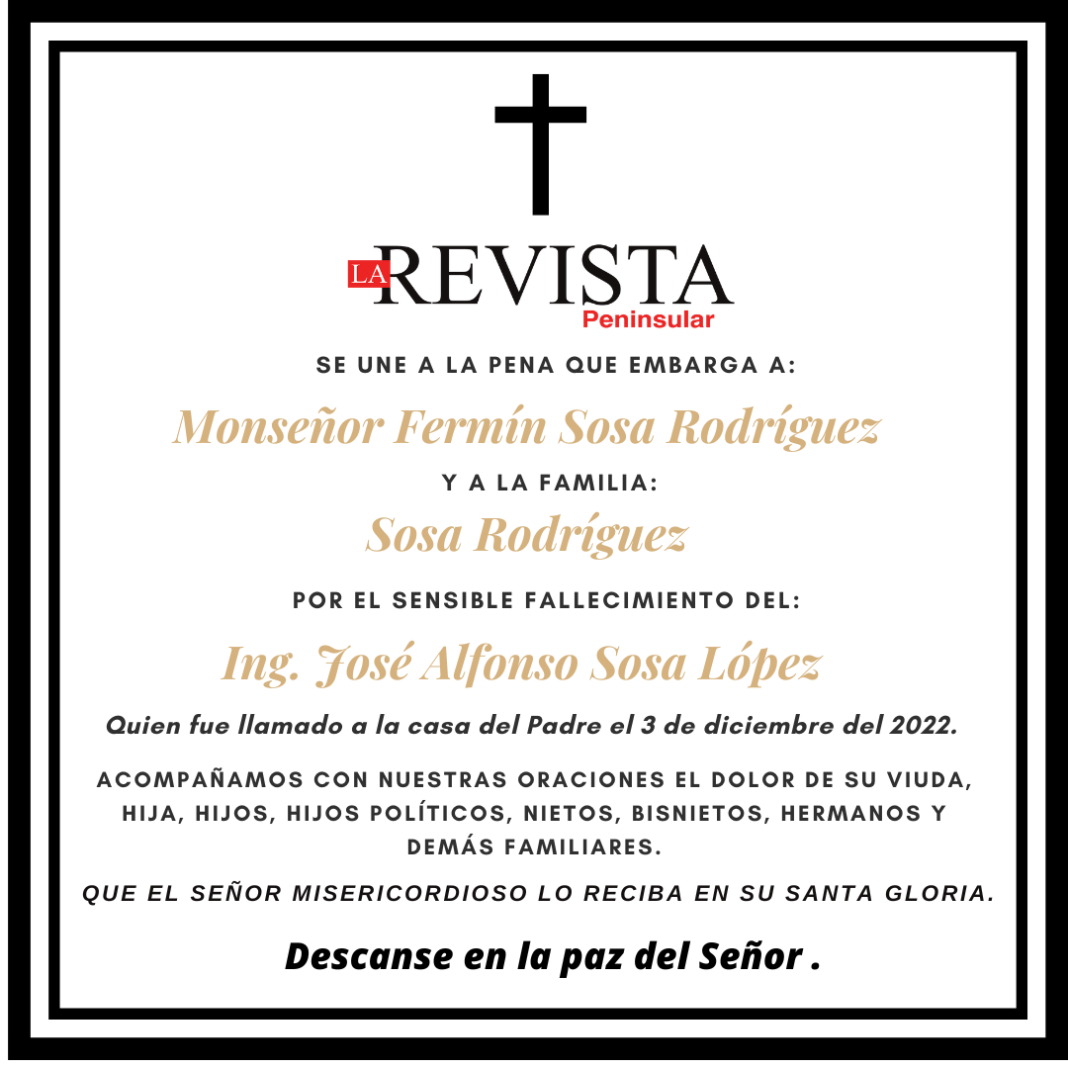 De manera repentina y a la edad de 82 años, hoy sábado 3 de diciembre falleció en Mérida el ingeniero José Alfonso Sosa López, quien fue maestro del Instituto Tecnológico de Mérida, director de Educación Pública y subsecretario de Planeación educativa de la SEP federal, además de director de Servicios Públicos Municipales de Mérida y de Servicios Generales de Estado de Yucatán.