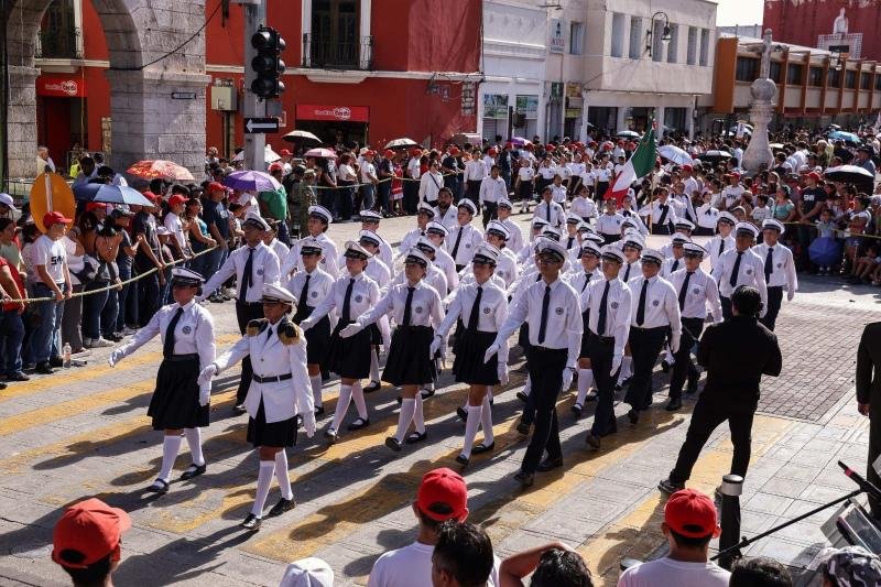 Con la participación de 2,741 estudiantes de 47 planteles de secundaria, bachillerato y nivel superior, se realizó el desfile cívico-militar conmemorativo por el 215º Aniversario del Inicio de la Independencia de México, el cual comenzó con el izamiento de la Bandera en la Plaza Grande de Mérida.