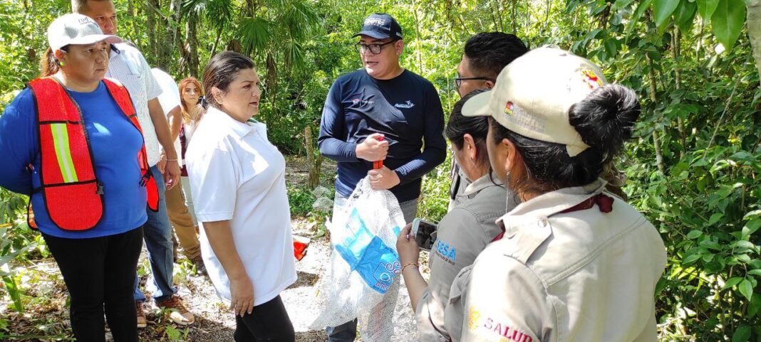 Cancún, Q.R., a 08 de septiembre de 2022.- La encargada del despacho de la Presidencia Municipal, Lourdes Latife Cardona Muza, constató la jornada de limpieza de cenotes urbanos en uno de ellos conocido como “Las Brujas” en Avenida Carabanchel, como parte del “Programa de Saneamiento e Integración Social de Humedales de Agua Dulce de la Ciudad de Cancún”, a cargo de la Dirección General de Ecología.
