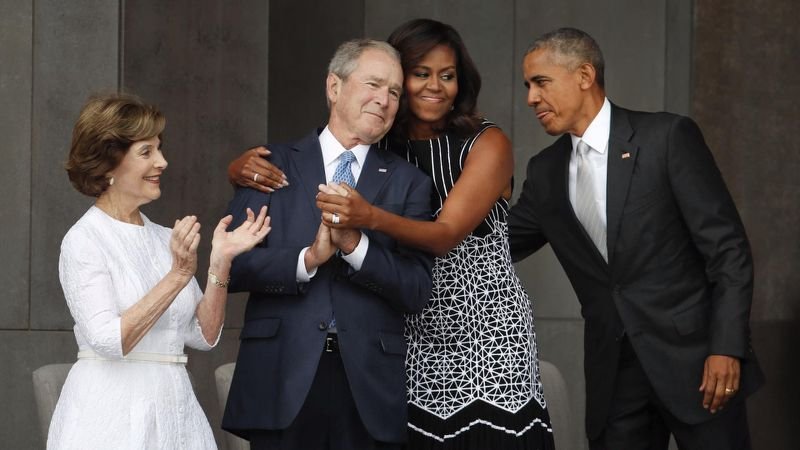 Esta relación ya había dejado imágenes memorables, cuando en julio pasado George W. Bush y Michelle Obama manifestaron su simpatía mutua durante un servicio fúnebre a cinco policías asesinados en Dallas, Texas.