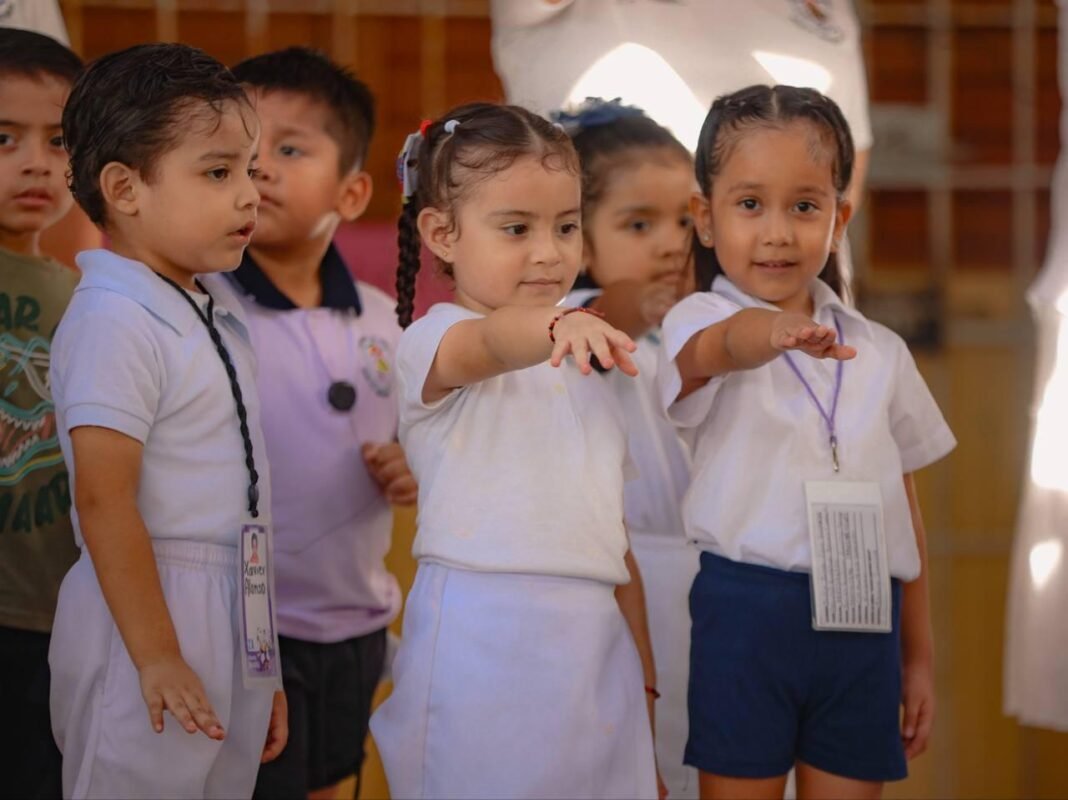 Cancún, Q. R., a 09 de octubre de 2023.- Como cada lunes y a primera hora, la Presidenta Municipal de Benito Juárez, Ana Patricia Peralta, encabezó el evento cívico del Jardín de niños “Nuevo imperio maya” en donde también se presentó el programa “Vive sin Acoso”, en donde se llevan a las instituciones educativas diversas actividades en donde las niñas y niños adquieren herramientas que les permitan identificar conductas violentas y de alto riesgo, las cuales les contribuirán a disminuir los índices de acoso y violencia escolar en el municipio.