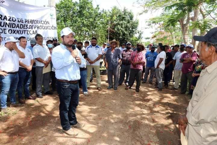 Oxkutzcab, Yucatán.-Con gestiones del alcalde Juan José Martín Fragoso, doce unidades de riego del municipio se verán beneficiadas con la perforación de pozos para uso agrícola que se realiza mediante programa de la Secretaria de Desarrollo Rural del Estado, con una inversión de 5 millones de pesos.
