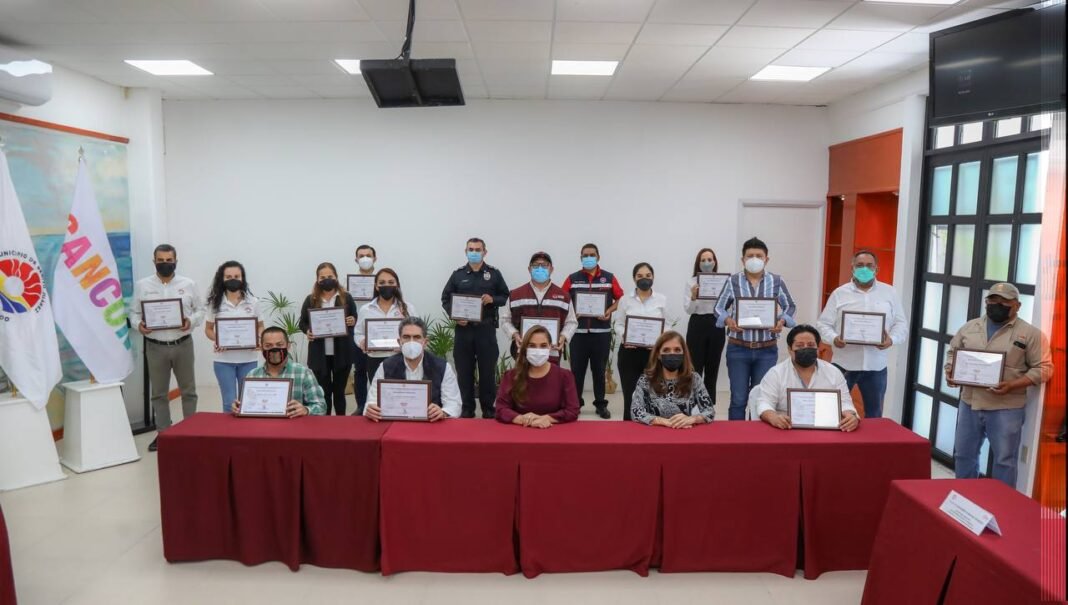 Cancún, Q.R., a 07 de enero de 2022.- Personal del Ayuntamiento de Benito Juárez de 12 diferentes dependencias y representantes de la iniciativa privada recibieron reconocimientos por el éxito que tuvo el recorrido de luces navideñas “Christmas Show Cancún”, que de manera gratuita y todos los protocolos sanitarios pudieron disfrutar en diciembre miles de familias para tener un momento de sano esparcimiento.