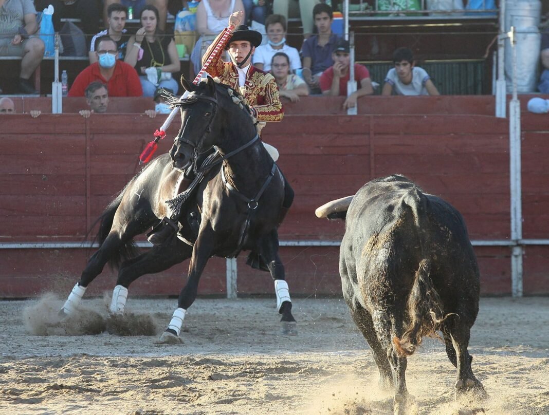El primer toro de Guillermo, que resultó áspero y complicado y de muy poco lucimiento. Desde el inició mostró sus credenciales, cortando mucho por la derecha y apretando a MARTINCHO en las reuniones. EXTRAÑO e INDICO intentaron en todo momento lucir, pero el toro esperaba mucho y cuando los sentía en sus terrenos, apretaba e incluso llegaba a tocar a los caballos. La pericia de ambos y por supuesto de Guillermo, los libró en más de una ocasión y los caballos pudieron dejar destellos de su toreo, sobre todo en las banderillas con EXTRAÑO. El cierre con CORSARIO comenzó con la rueda de cortas, aguantando los derrotes arriba del astado y con un rejón de muerte cruzado que no hizo efecto, necesitando dos golpes de descabellos. Hubo leve petición, pero insuficiente para que la presidencia concediera algún trofeo.