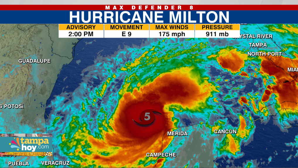 El SMN ha advertido que Milton se mantiene como huracán de categoría 5, con vientos máximos sostenidos de 280 km/h y ráfagas de hasta 330 km/h, avanzando a 15 km/h hacia el este. A medida que se acerca a las costas de Yucatán, se espera que toque tierra entre las 18:00 horas del lunes y las 06:00 horas del martes. Posteriormente, seguirá su trayecto hacia el sur de Estados Unidos, donde podría tocar tierra en Tampa, Florida, el miércoles 9 de octubre.