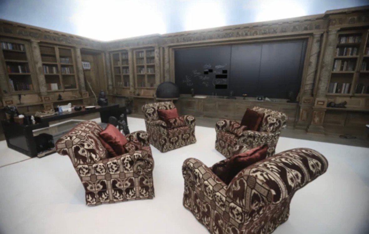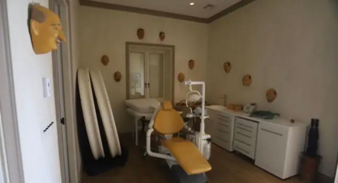 Las imágenes y videos, capturados en 2020, revelan espacios que hasta ahora permanecían ocultos: dormitorios, baños, salones, áreas exteriores e instalaciones de la propiedad. Entre las estancias más perturbadoras figura un cuarto equipado con lo que parece un sillón de dentista, cuyas paredes están cubiertas con máscaras de rostros masculinos —un detalle que, dada la historia del caso, resulta inquietante. En otra fotografía aparece un teléfono fijo con varios contactos en marcación rápida (con nombres como Darren, Rich, Mike, Patrick y Larry), lo que sugiere una red de comunicación interna en la mansión. Además, en un salón se ve una pizarra en la que se han escrito palabras como “poder”, “engaño” o “política” —inscripciones crípticas que alimentan las interrogantes sobre el uso real de esos espacios.