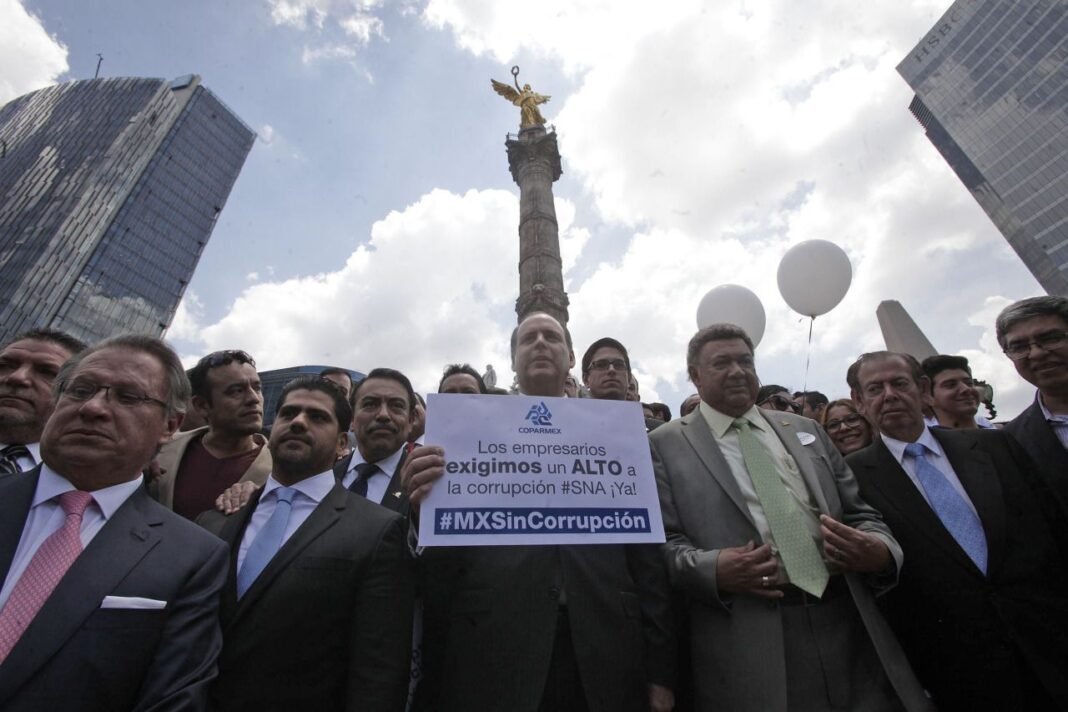 En un hecho inédito el sector empresarial, como si fueran maestros, campesinos o estudiantes o cualquier grupo con un reclamo social, tomaron la Columna del Ángel de la Independencia para exigir al Congreso la aprobación de las siete leyes del Sistema Anticorrupción y reclamar “las ocurrencias de madrugada”, que ahora los obliga presentar su 3 de 3.